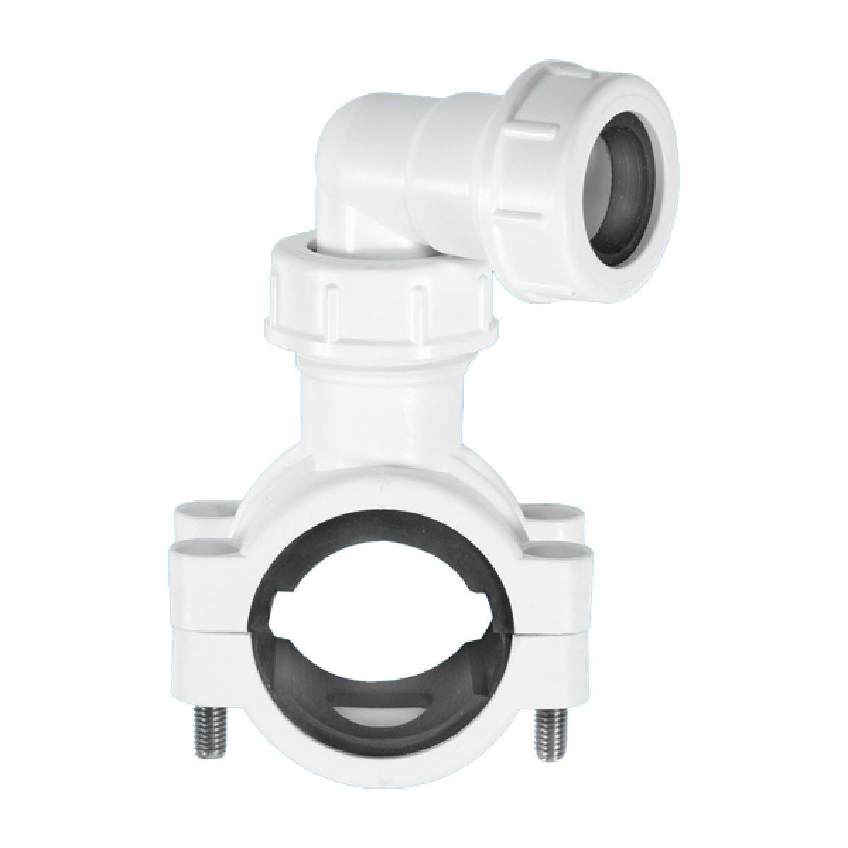 1.1/4" - 1.1/2" McAlpine ASA Plastic Pipe Clamp White. Universal Connections for 19/23mm rigid pipe and 25mm flexible pipe - CLAMP1WH