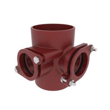 Ensign Soil EF092 Double Compression Boss Pipe @ 90º 100mm - Provides a simple solution for connecting two plastic / copper waste pipes opposed or at 90° to the vertical soil stack.