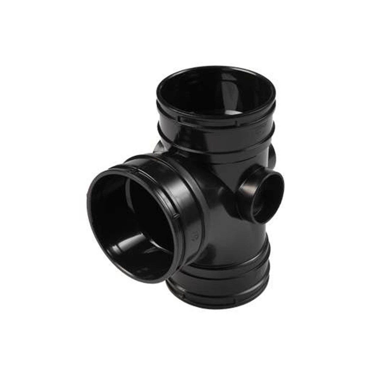 Terrain Solvent Soil 110mm Single Spigot Branch Outlet With 4 Boss Connections 92° - Black