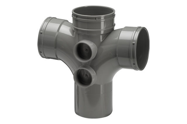Terrain Solvent Soil 110mm Double Branch Socket Outlet With 4 Boss Connections 92° - Grey