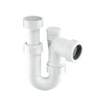 1.1/4" McAlpine Adjustable Inlet Tubular Swivel Anti-Syphon 'P' Trap (Silentrap). 75mm Water Seal With Universal Compression Outlet suits all plastic, copper and lead pipe. The adjustable trap makes it suitable for almost any domestic repair or maintenance job. Anti-Syphon Valve neutralises negative syphonic pressure and eliminates gurgling. Manufactured in Polypropylene - ASA10V