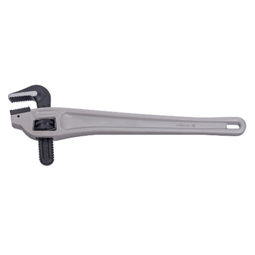This one-handed 90° corner pipe wrench comes with replaceable jaws and hooks. Its ideal for holding and gripping pipes and other profiles up to 2.1/2”. A robust and durable tool for many different applications from general DIY, Plumbing, Automotive and Engineering. The pipe wrench features a lightweight aluminium body with high-strength double-T profile, it is 40% lighter than its steel counterpart.