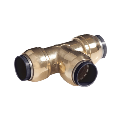 SharkBite Equal Tee is a brass push-fit fitting which is tough, withstanding high temperature and pressure. The fitting is designed for the connection of 3 equally sized pipes. Made from DZR brass its sleek design means they also look good in front of wall applications too. Using a simple push-fit action, SharkBite uses a stainless steel grab and O-Ring seal to provide a safe secure connection. SharkBite is suitable for plastic pipe (with inserts) and copper pipe, and can be easily demounted and reused.