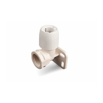Wavin Hep2O wall plate elbow 0.5"x15mm white. Hep2O is packed with unique features that make fitting easier quicker and more secure for installers. It is the only system with joint recognition and secure demounting and comes with a 50 year guarantee. Easily convert 15mm Hep2O pipe to a 1/2" connection and mount to wall. Hot and cold flexible push-fit plumbing system. In4Sure joint recognition for secure joints