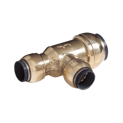 SharkBite Reduced Run Tee is a brass push-fit fitting which is tough, withstanding high temperature and pressure. The fitting is designed connecting 2 unequal pipe sizes and connecting a third additional 22mm pipe from the branch connection. Made from DZR brass its sleek design means they also look good in front of wall applications too. Using a simple push-fit action, SharkBite uses a stainless steel grab and O-Ring seal to provide a safe secure connection. SharkBite is suitable for plastic pipe (with inserts) and copper pipe, and can be easily demounted and reused.