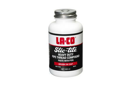 LA-CO Slic-tite¨ Paste with PTFE. Formulated specially with PTFE for added sealing power, Slic-tite is the premium thread sealant paste. It has been used for decades to seal water, air, steam, natural gas, and more. Removable from skin and clothing easily and successfully, reducing post-job cleanup time. Slic-tite thread sealant works in extremely high-pressure systems, and it comes with several approvals to ensure industry standards are met.