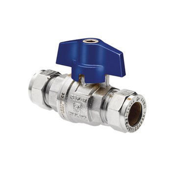 28mm Pegler Chrome Plated Brass Full Bore Ball Valve With Compression Ends (Blue T Handle) - PB300T