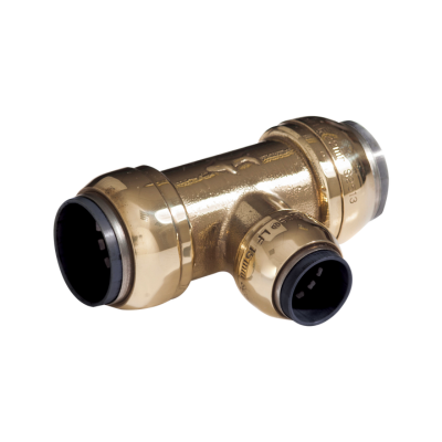 SharkBite Branch Tee is a brass push-fit fitting which is tough, withstanding high temperature and pressure. The fitting is designed for adding an additional branch with a BSP connection to an existing pipe run. The slip connection allows for adjustable insertion depth. Made from DZR brass its sleek design means they also look good in front of wall applications too. Using a simple push-fit action, SharkBite uses a stainless steel grab and O-Ring seal to provide a safe secure connection. SharkBite is suitable for plastic pipe (with inserts) and copper pipe, and can be easily demounted and reused.