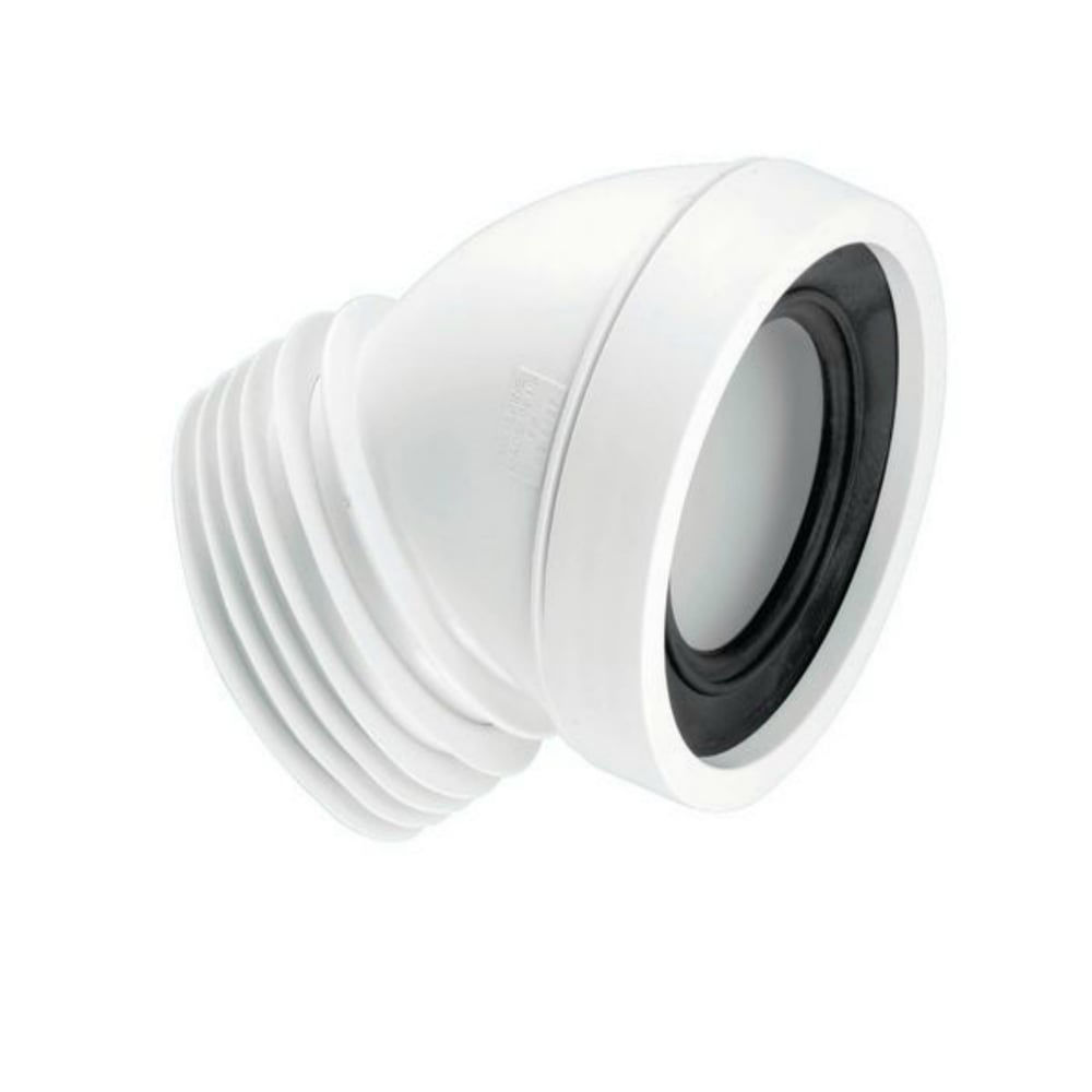 4" 45° Angle Rigid WC Pan Connector. 110mm Outlet, 97-107mm Inlet suits all pan spigots. Manufactured in Polypropylene - WC-CON16