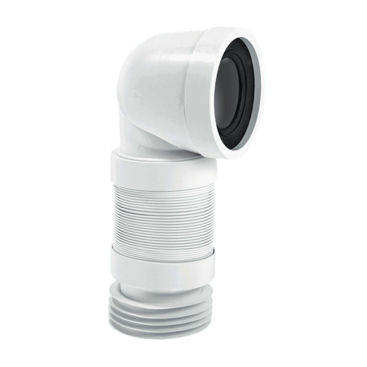 4" 90° Flexible WC Pan Connector. Extendable length 220-400mm. 110mm Outlet, 97-107mm Inlet suits all pan spigots. Manufactured in Polypropylene - WC-CON8F
