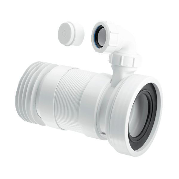 4" Medium Length 140-290mm Straight Flexible WC Pan Connector with 1.1/4" Universal Vent Boss. 110mm Outlet, 97-107mm Inlet suits all pan spigots. Manufactured in Polypropylene - WC-F23RV