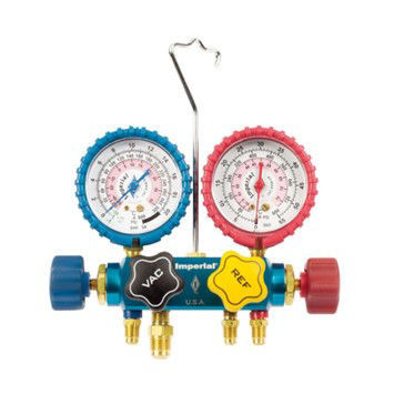 R410A 63mm Gauges 4-Valve Efficiency - Vacuum, low side, high side, and refrigerant lines are individually connected and controlled with 4-valve Efficiency. No need to switch charging lines.