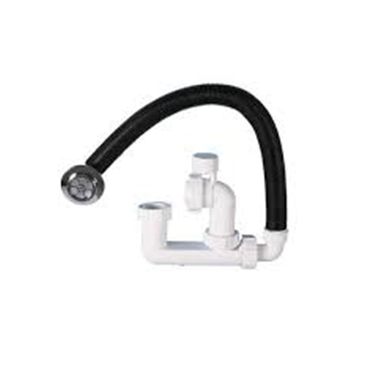 Terrain Waste 40mm Bath Trap Low Level With Overflow Hose And CP Rose - Anti Syphon - White