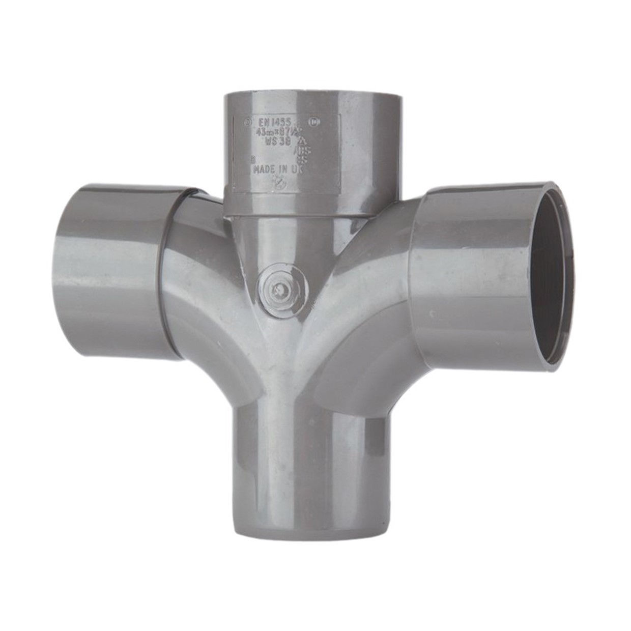 Terrain MuPVC Solvent Waste 40mm Socketed Sweep Cross 91° - Grey
