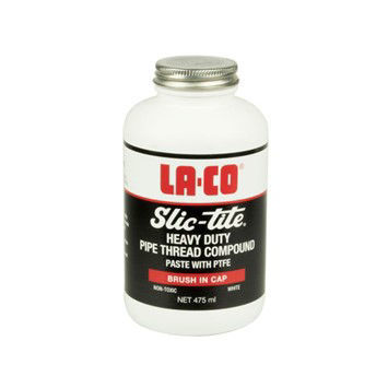 LA-CO Slic-tite¨ Paste with PTFE. Formulated with PTFE for added sealing power, Slic-tite is the premium thread sealant paste. It has been used for decades to seal water, air, steam, natural gas, and more successfully. It is easily removable from skin and clothing, reducing post-job cleanup time. Slic-tite thread sealant works in extremely high-pressure systems, and it comes with several approvals to ensure industry standards are met.