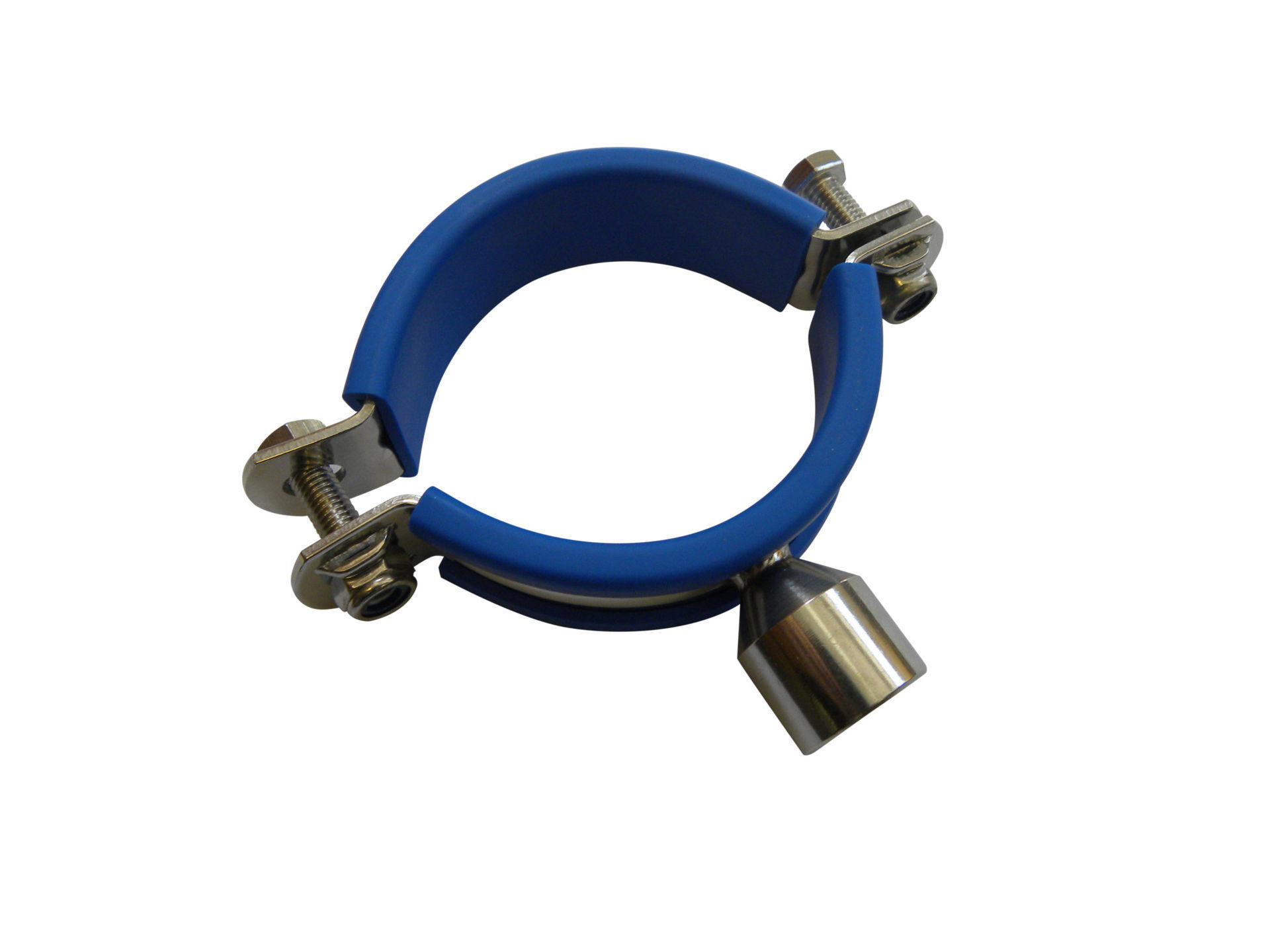 70mm Stainless 304 Grade Steel Pipe Clip c/w Anti Vibration Blue Insert M10 Bossed