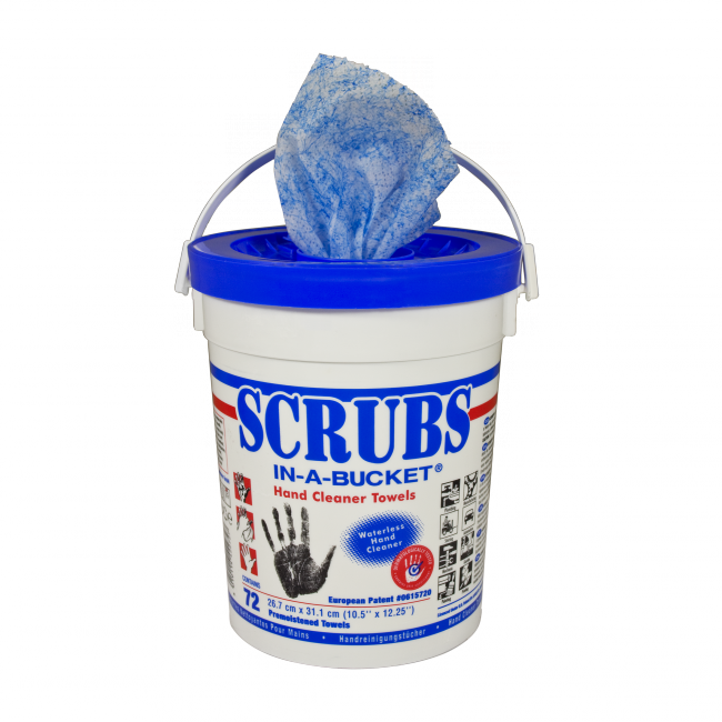 Tub of Industrial in-a-Bucket Scrubs Hand Wipes