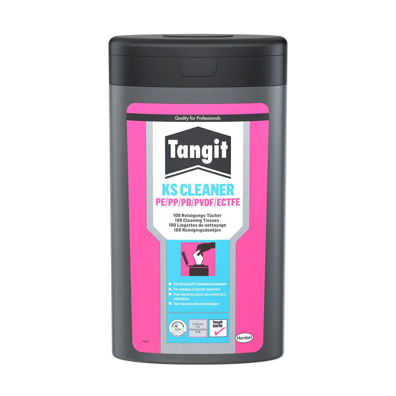 A special cleaning agent for plastic weld joints made of PE/PP/PB/PVDF/ECTFE surfaces. Cleans and degreases smooth surfaces in preparation for bonding. 1 dispenser with 100 tissues.